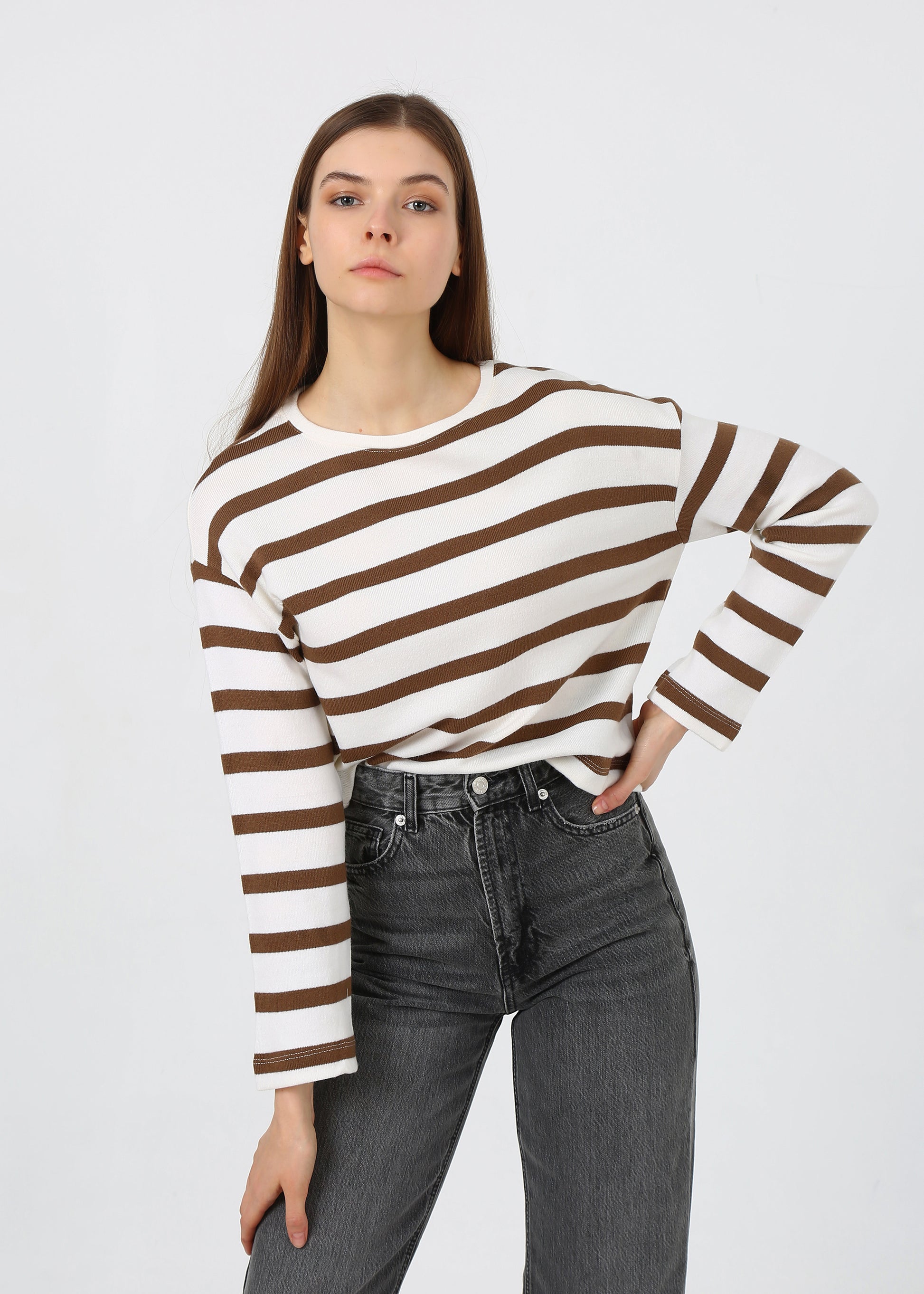 Kahverengi Çizgili Triko İndirimdeKahverengi Çizgili Triko