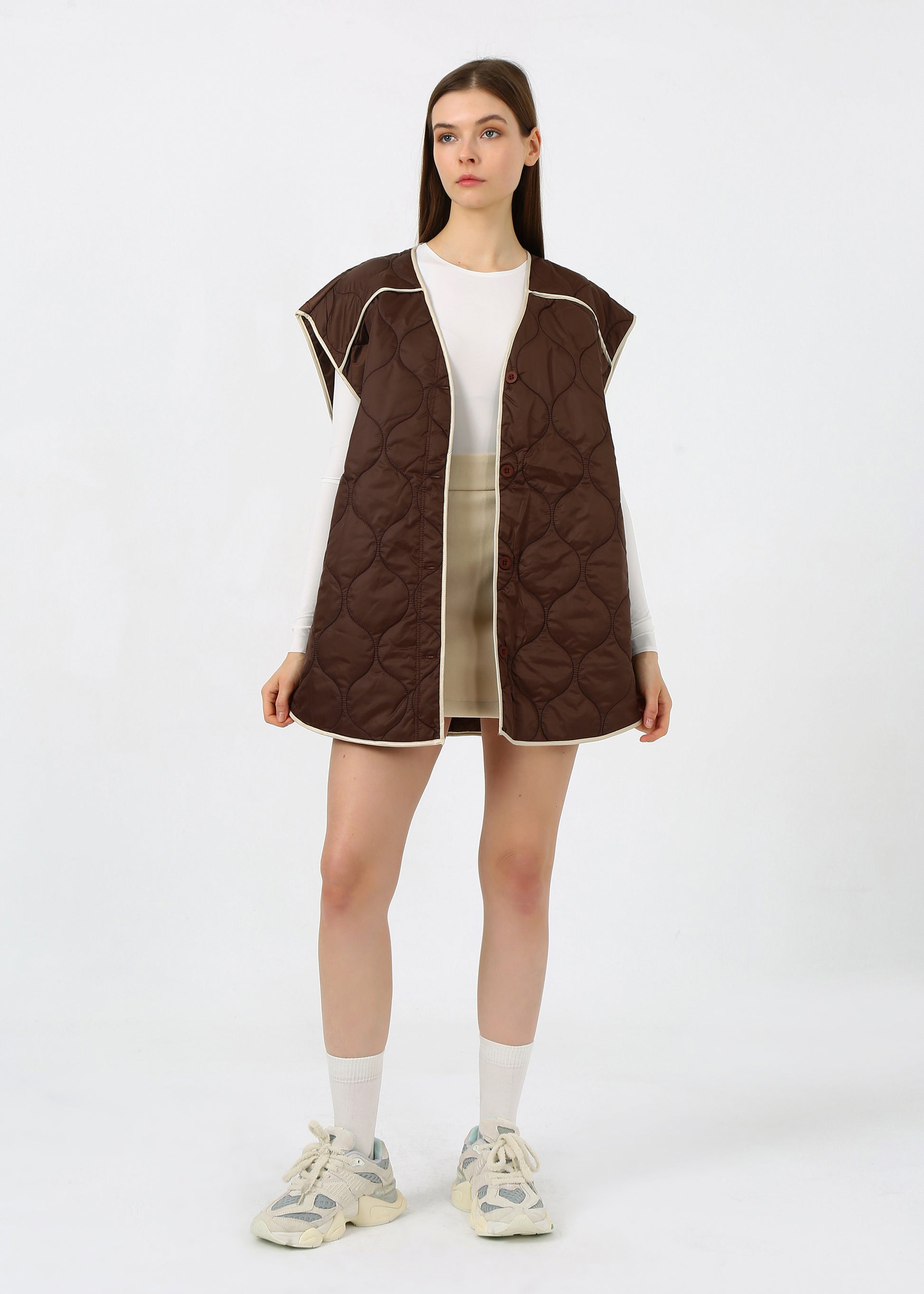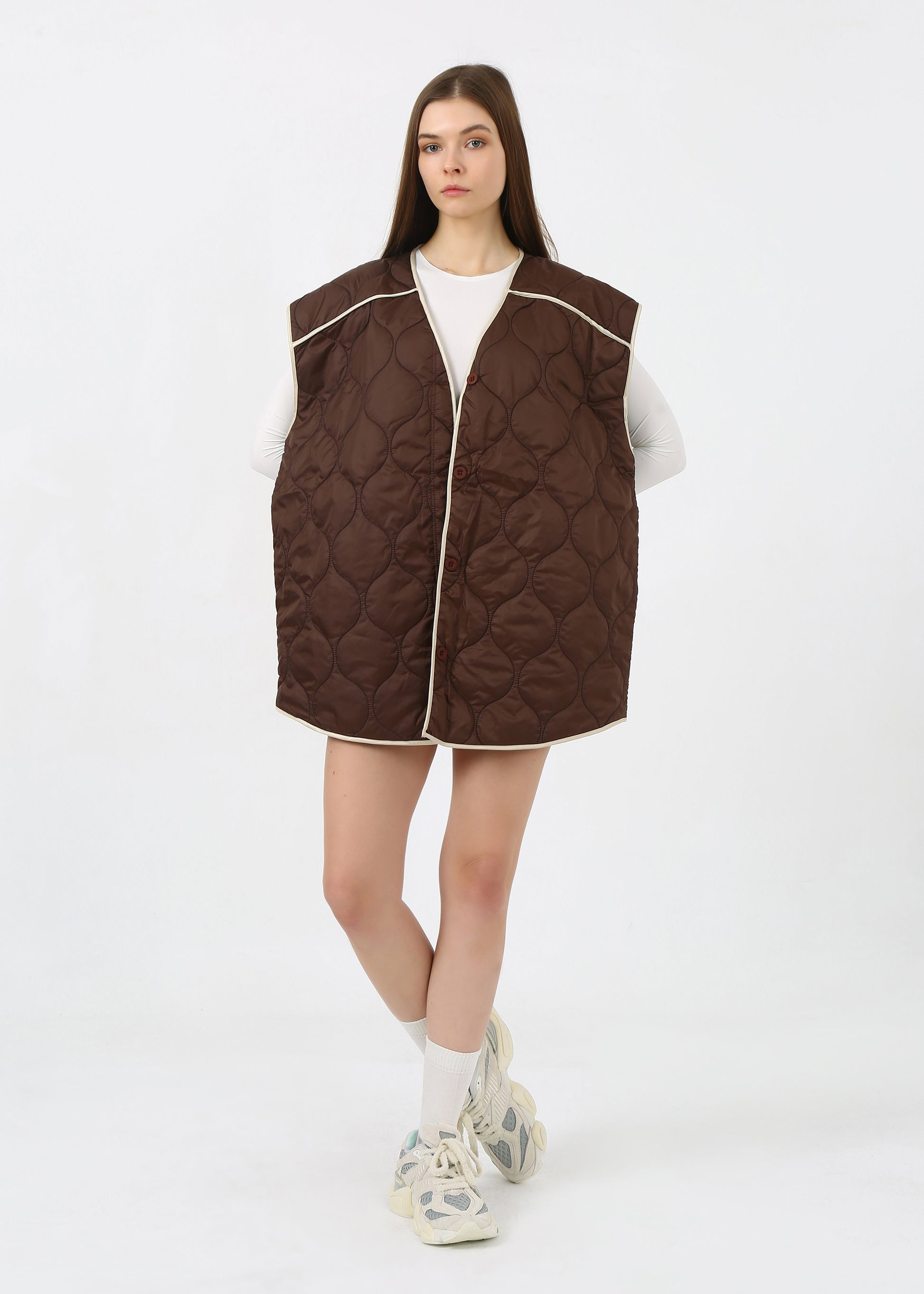 Kahve Kapitone Yelek İndirimdeKahve Kapitone Yelek